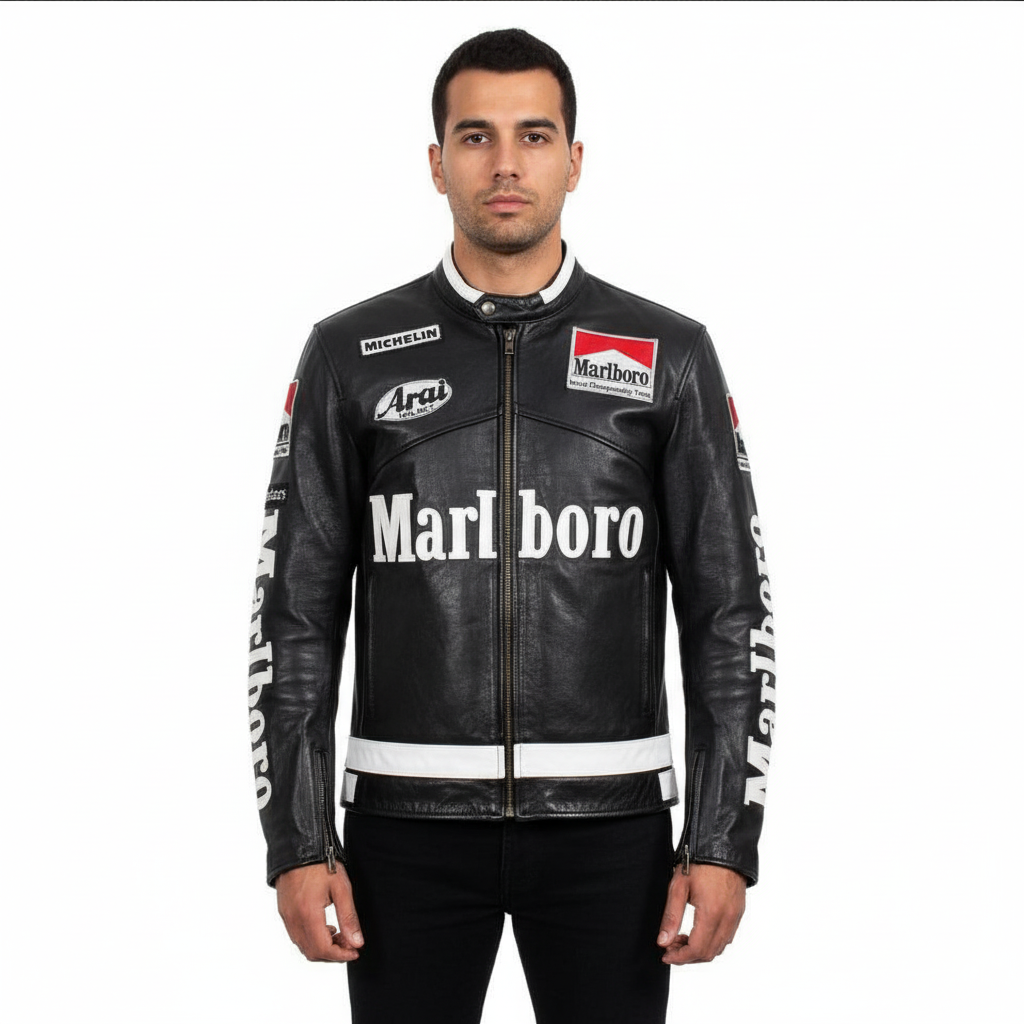 Own the road with classic style and modern protection. The Men’s Marlboro Black Biker Jacket is built for serious riders. It offers legendary abrasion resistance. This jacket ensures safety without sacrificing iconic biker design. It features premium materials and practical details. Ride confidently and look sharp.