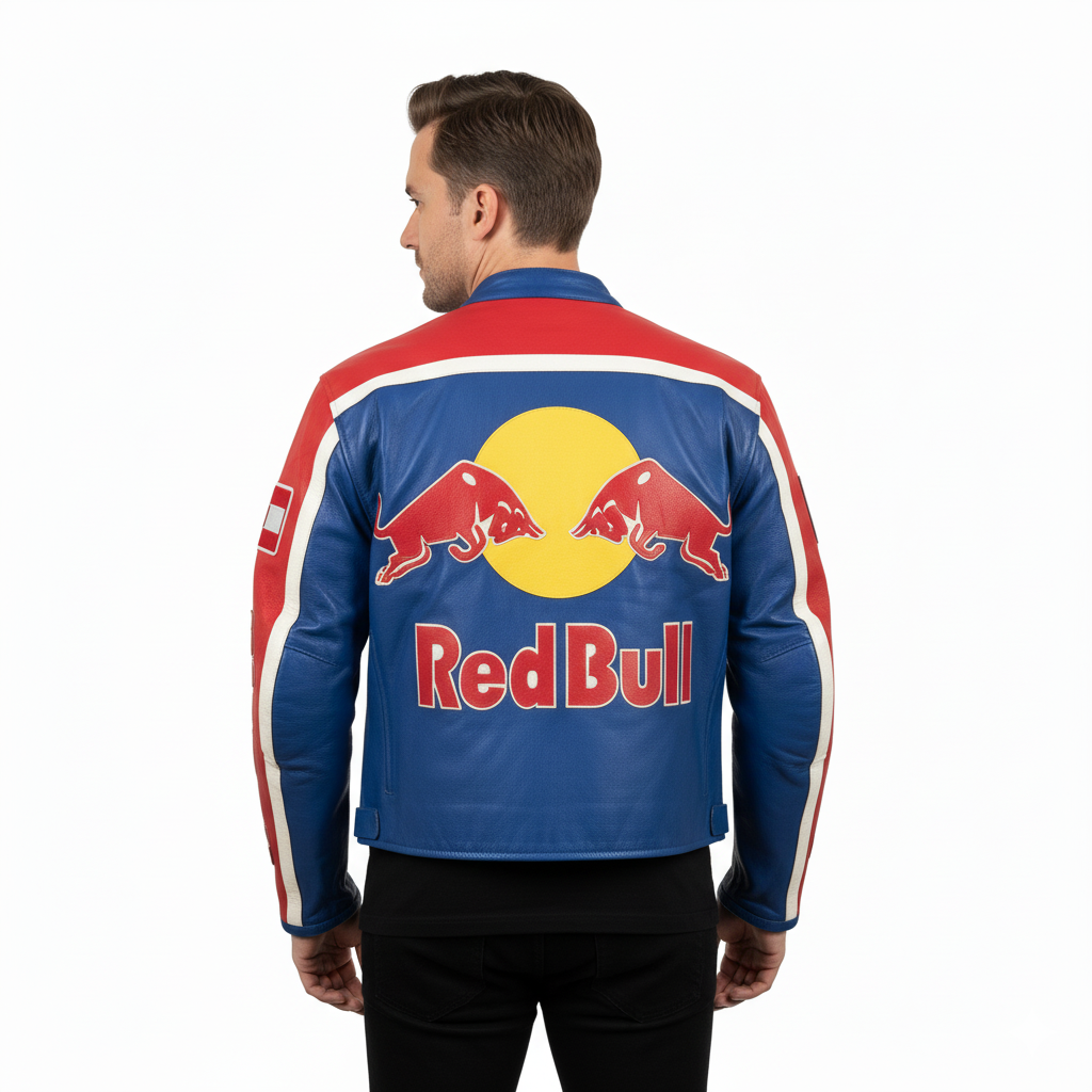 Don’t miss out on owning a piece of Red Bull Racing history with this Vintage Retro Red Bull Racing Leather motorcycle Jacket. Perfect for riders or fashion-conscious individuals who want to combine style with heritage.