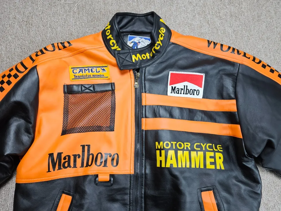The Marlboro Racing Leather jacket is meticulously made from 100% genuine leather, ensuring durability, comfort, and style. The material has a luxurious texture that improves with age, giving you a unique look every time you wear it. The interior is lined with soft polyester for added comfort and insulation, making it perfect for all seasons.